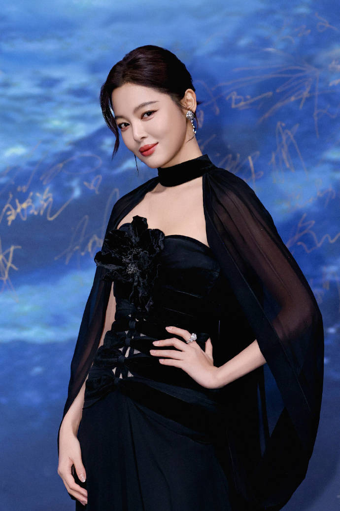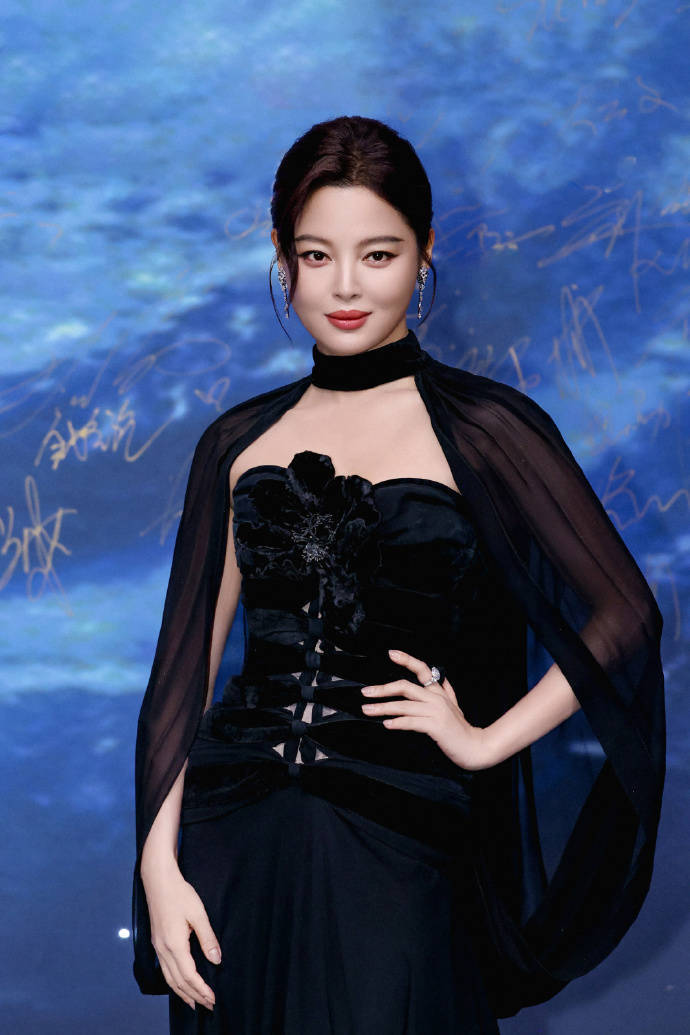 黑色抹胸长裙,辛芷蕾在微博之夜的这款穿搭诠释了“低调中的极致奢华”,宛如红毯上的冷艳女王。裙装采用丝绒与薄纱拼接,营造出丰富层次感。丝绒材质的哑光质感,内敛又贵气,衬托出她的冷艳气质;轻盈透明的披风式外层,为造型增添神秘与流动感,恰似从深海走出的暗夜精灵。立体花朵装饰细节,呼应“暗黑玫瑰”意象。披风垂坠感带来“哥特式优雅”视觉冲击,极具戏剧张力。